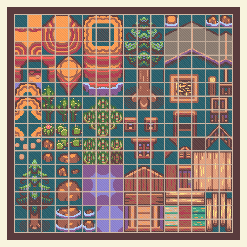 Send your players to [???] with this asset pack containing a tileset of 255 static tiles and a few animated elements and/of [???].
